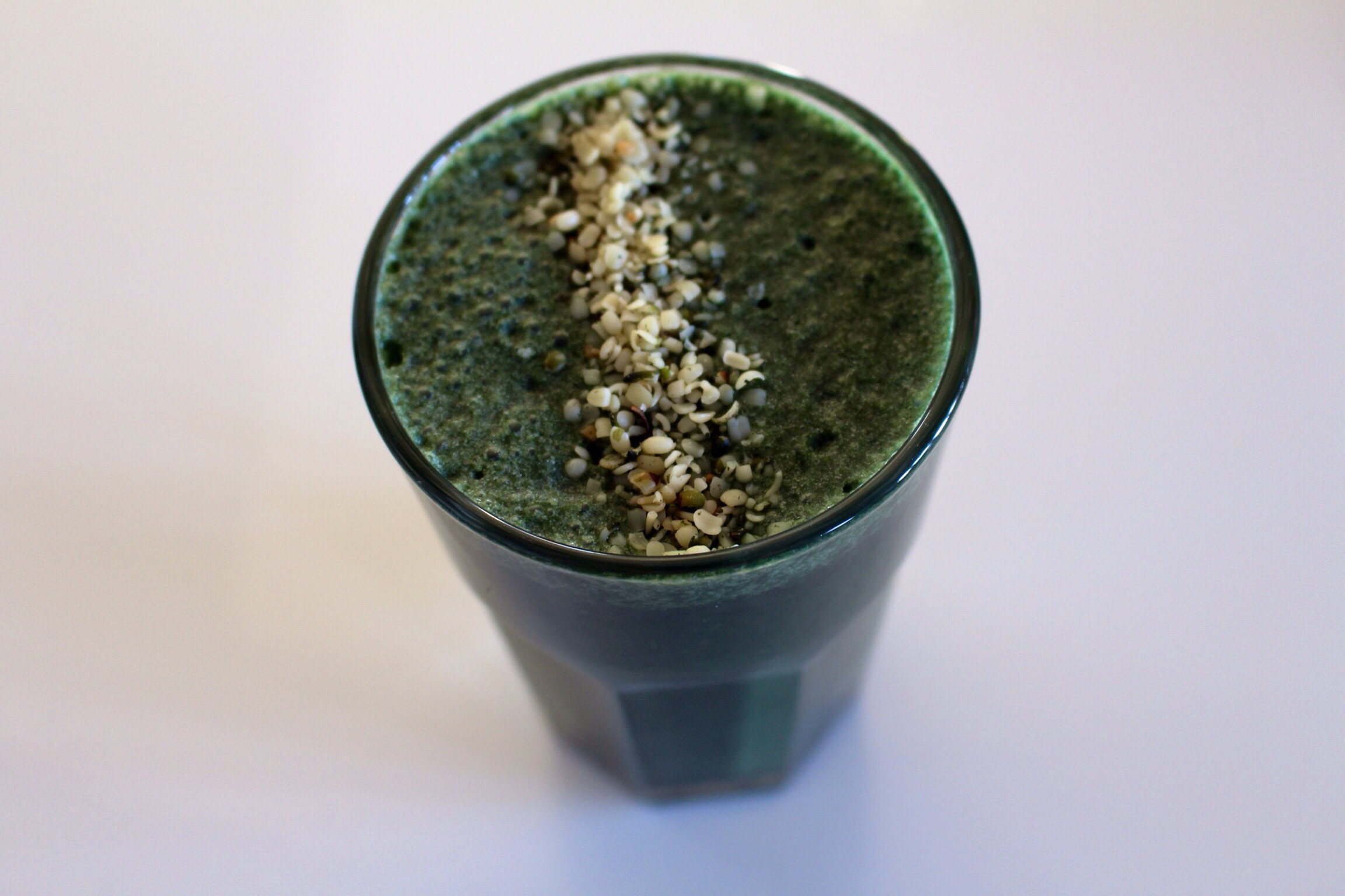 A really GREEN smoothie with spirulina and hemp. Muscle heads and protein shakes eat your heart out.