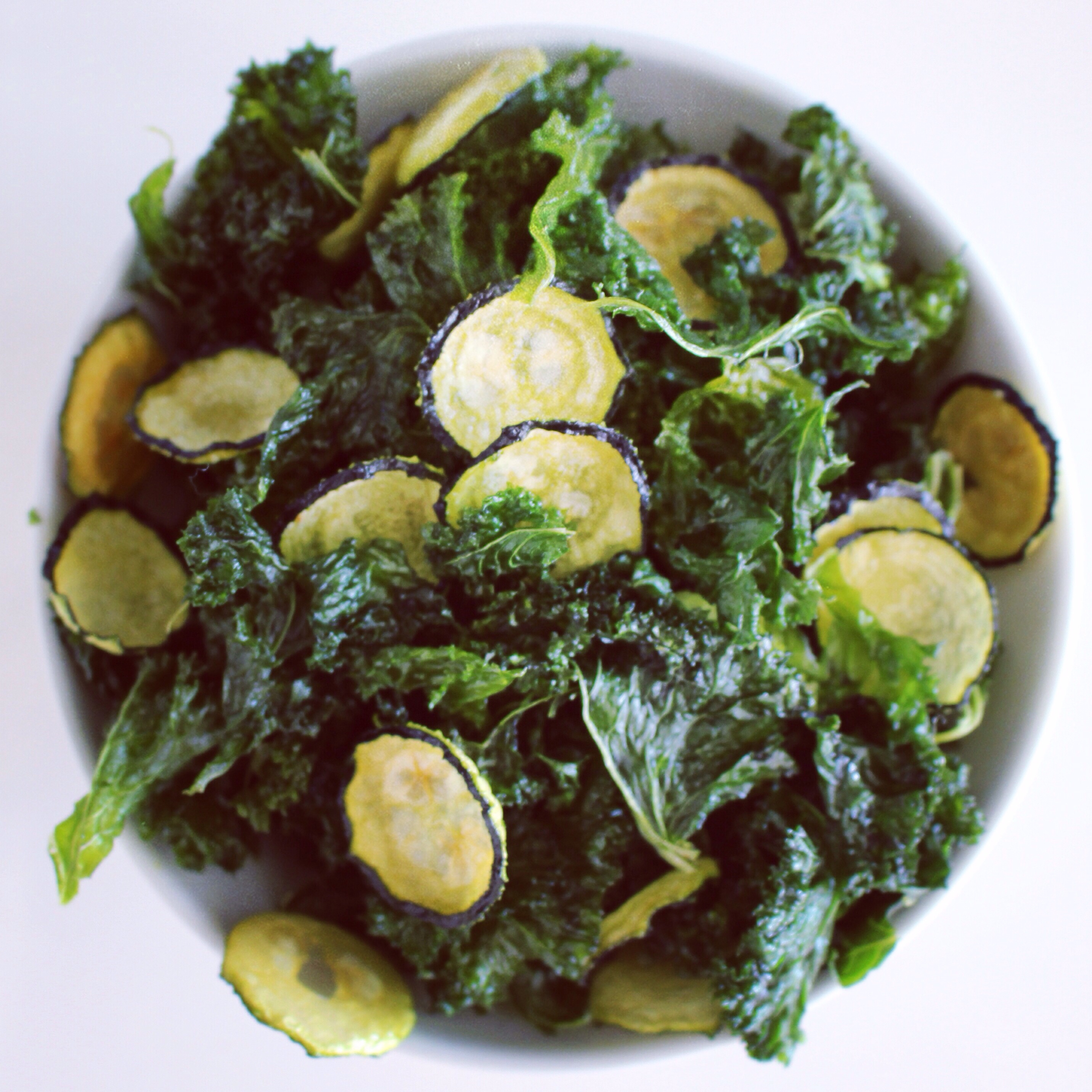 dehydrated kale and zucchini chips. Much better than beige potato chips 😉